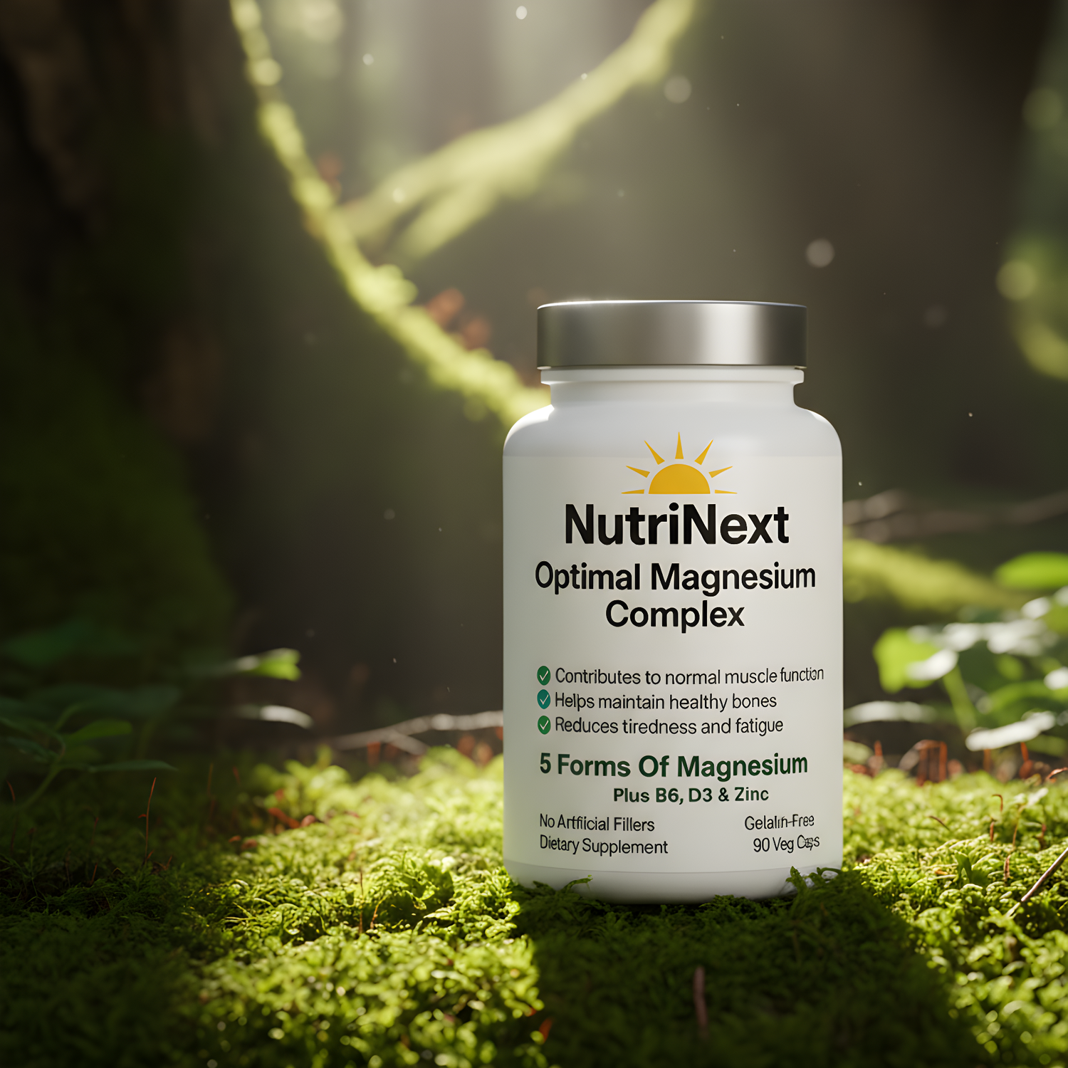 NutriNext Optimal Magnesium Complex innehåller fem bioaktiva former av magnesium, noggrant utvalda för bästa möjliga upptag i kroppen. Magnesium är ett livsviktigt mineral som medverkar i över 300 enzymstyrda processer – från energiproduktion och nervsignalering till muskelavslappning och benhälsa.